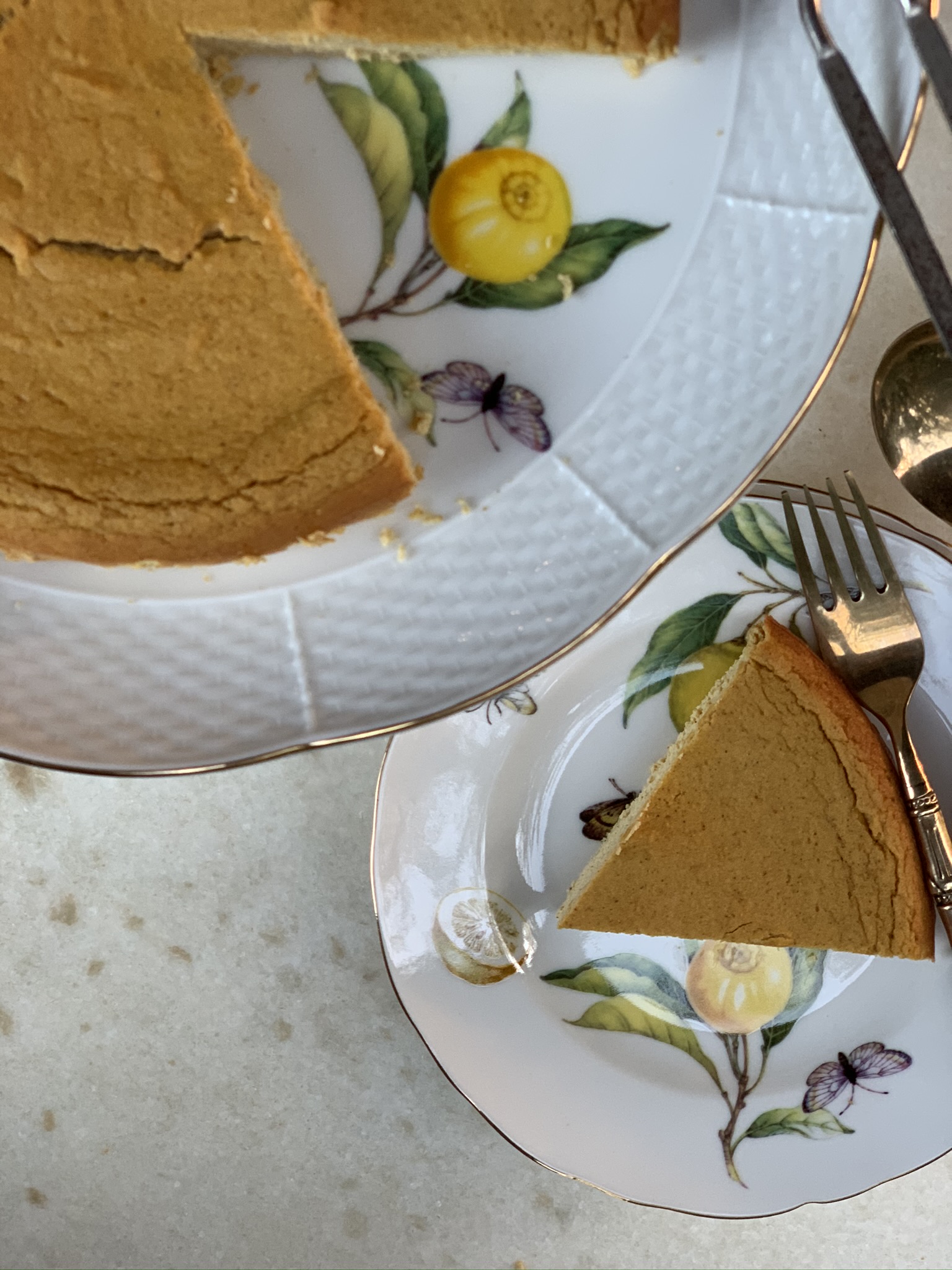 É que o bolo é de uma leveza incrível. Daqueles sabores delicados, simples, elegantes. O azedinho do maracujá está ali, mas não tão óbvio, não tão marcante. É leve, cremoso, tem um doce-azedinho ou um azedinho-doce que faz com que a segunda fatia seja certeira. É mais uma sobremesa que um bolo para tomar com café (que, aliás, acho que seria forte de mais para tanta suavidade). A textura é quase de uma musse, ele sai ainda úmido do forno e, se quiser, pode ir para a geladeira.