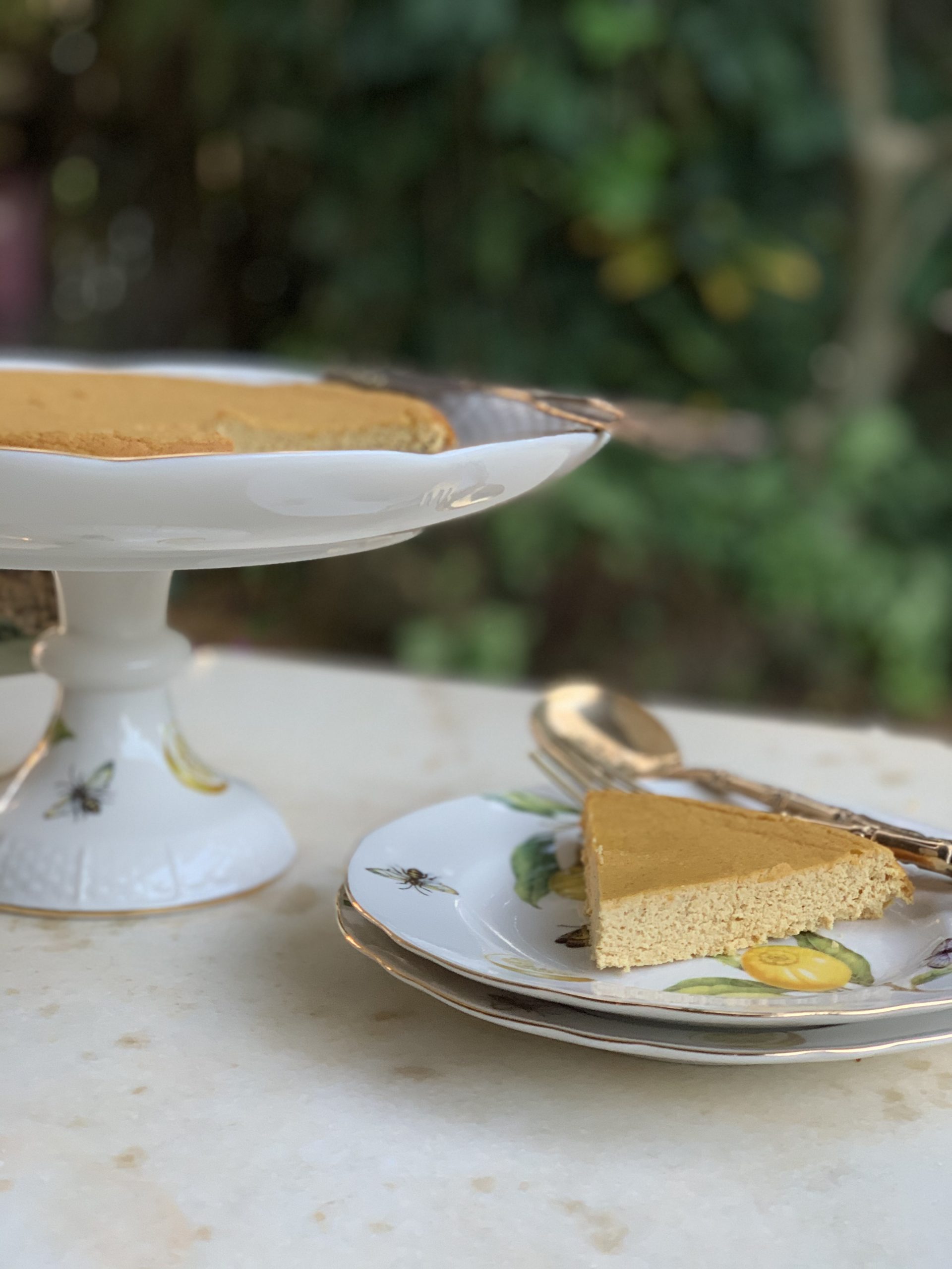 - Unte com óleo de coco uma fôrma pequena (24 cm de diâmetro), de preferência de fundo falso, e reserve.