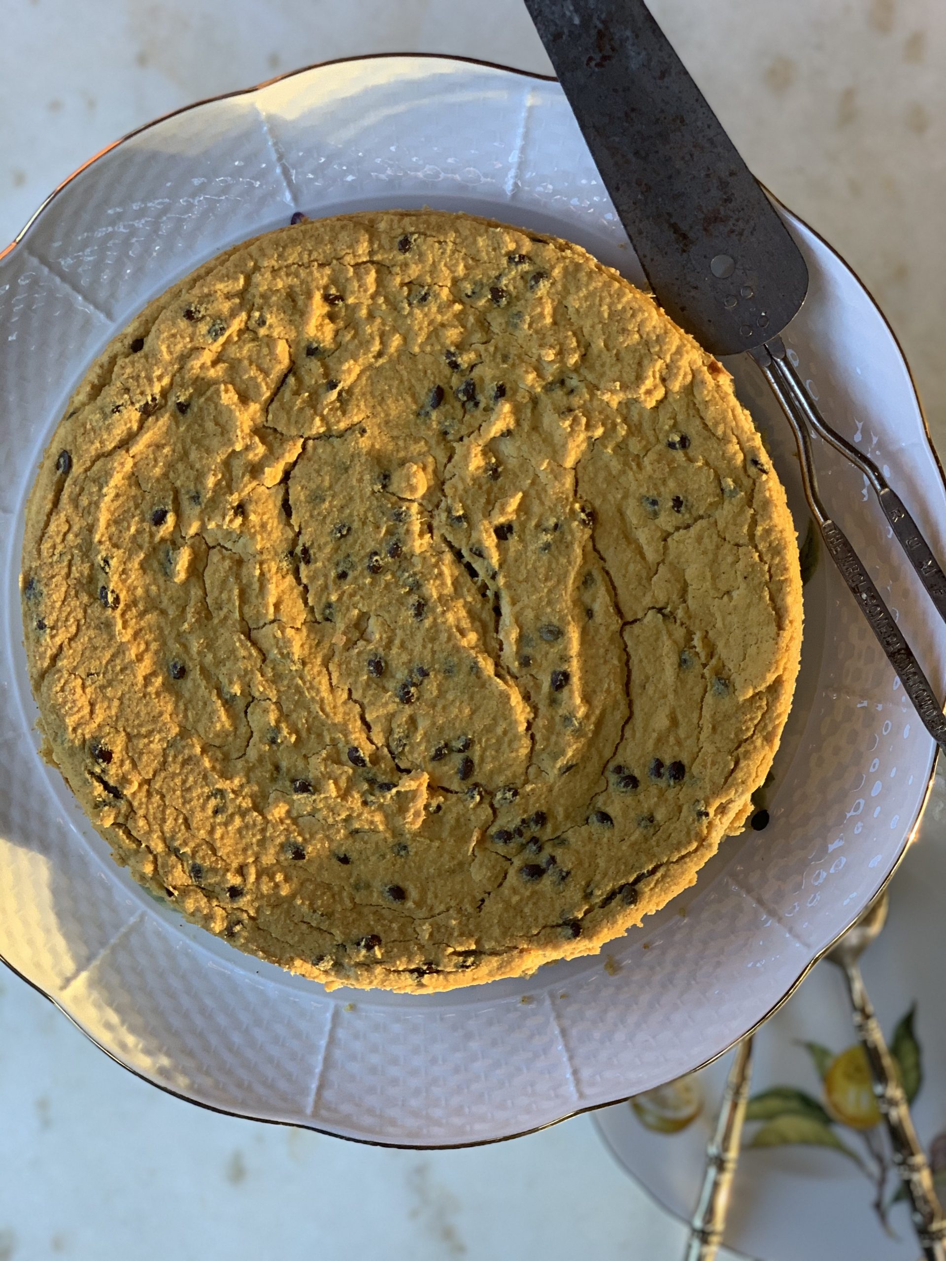 Aliás, maracujá, como fruta nativa do Brasil e da América Tropical, combina bem como tudo o que dá por aqui: cacau, coco, manga, castanhas, pimenta, manjericão. Com cajá-manga também é um sucesso. Outro dia usei como base a receita do creme de graviola e castanha e fiz um creme de maracujá com cajá-manga, fruta que, depois de um ano no pé (juro), decidiu amadurecer agora. Ficou uma delícia, reduzi a quantidade de melado para poder sentir bem o azedinho das frutas. E era nesse azedinho do maracujá (o daqui é até meio doce) que fiquei pensando numa noite de sábado quando bateu a vontade de comer algo gostoso. Me lembrei da receita do bolo-pudim de coco com limão, que é a mesma ideia do bolo-brownie da cacau, e resolvi testar com o maracujá. O resultado é que quase não sobra um pedaço para eu provar.