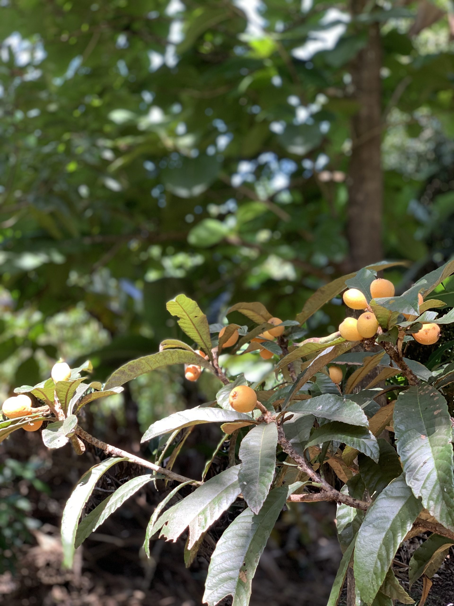Já temos hortelã se esparramando do vaso, taiobas sem fim, shissô, manjericão, alecrim, bastante pimenta-de-bode e biquinho. O pé de curry está lindo como nunca, o de limão-kaffir ganhou galhos e folhas novas de um perfume intenso e até o limão-cravo que plantei quando cheguei aqui já deu frutos. Mas o que está mesmo caindo aos montes são acerolas e nêsperas. Primeira vez que colho nêsperas, que muita gente conhece como ameixa ou ameixa amarela, e fiquei com vontade de cozinhar com essa frutinha chinesa que se adaptou bem nas terras tropicais e que tem a cara de quintal de vó. A primeira ideia foi fazer um curry. O aroma floral da nêspera combinaria bem com um curry apimentado de camarão à base de leite de coco. Depois, imaginei testá-la numa conserva indiana com pimentão e semente de coentro que geralmente faço com cajá-manga verde.