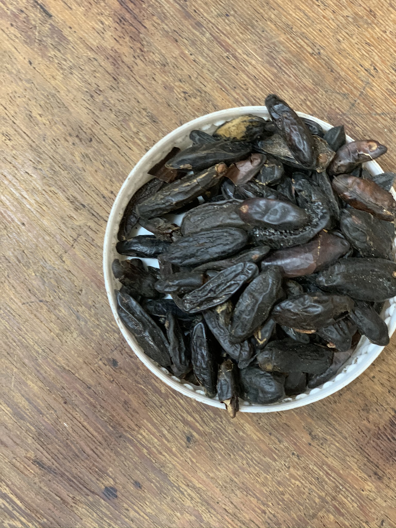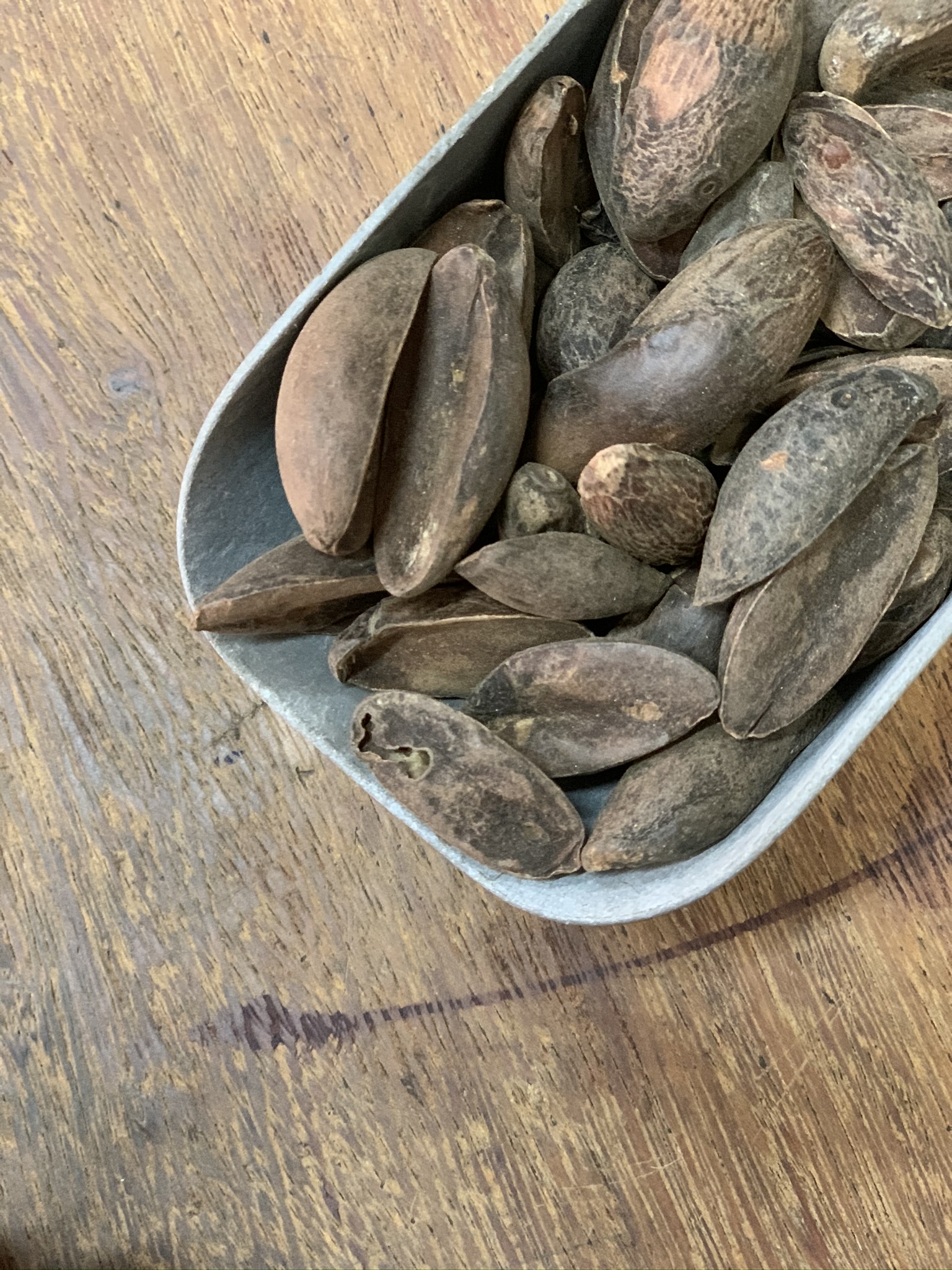 Outra coisa que vale trazer na mala para ter o gosto da floresta em casa são as “especiarias” amazônicas: cumaru ou fava-tonka, puxuri, embiriba. Essas sementes nativas são tradicionalmente usadas para banhos de cheiro no Pará, mas, aos poucos, têm chegado às cozinhas. Comprei as minhas numa loja de ervas perto do Ver- o-Peso, em Belém, mesmo sem saber ainda como usar algumas que eram novidades para mim, como o puxuri e a embiriba, além da raiz de priprioca. Já o cumaru é mais conhecido, embora ainda não tão explorado. Tudo bem que não se pode sair colocando cumaru em tudo por aí porque a cumarina em excesso é tóxica. Segundo pesquisas, a dose segura seria até um quarto de semente por dia por pessoa, o que já é mais que suficiente para aproveitar essa delícia. O sabor lembra um pouco a baunilha com um quê amendoado. Para usar, basta ralar um pouco em doces, por exemplo, para substituir a baunilha. Aqui em casa, gosto muito de usar na granola, podendo substituir ou não o cardamomo, e no bolo-brownie de cacau. A Maíra usa em pedacinhos bem pequenos junto com nibs de cacau em um dos sabores dos seus deliciosos kombuchas Tampopo. Lá em Belém, o Bruno (@brayub), marido da Maíra, sentiu uns pedacinhos da semente na deliciosa moqueca de peixe ao tucucpi do Remanso do Peixe. Todas ótimas ideias para começar a desvendar esse sabor do Norte.