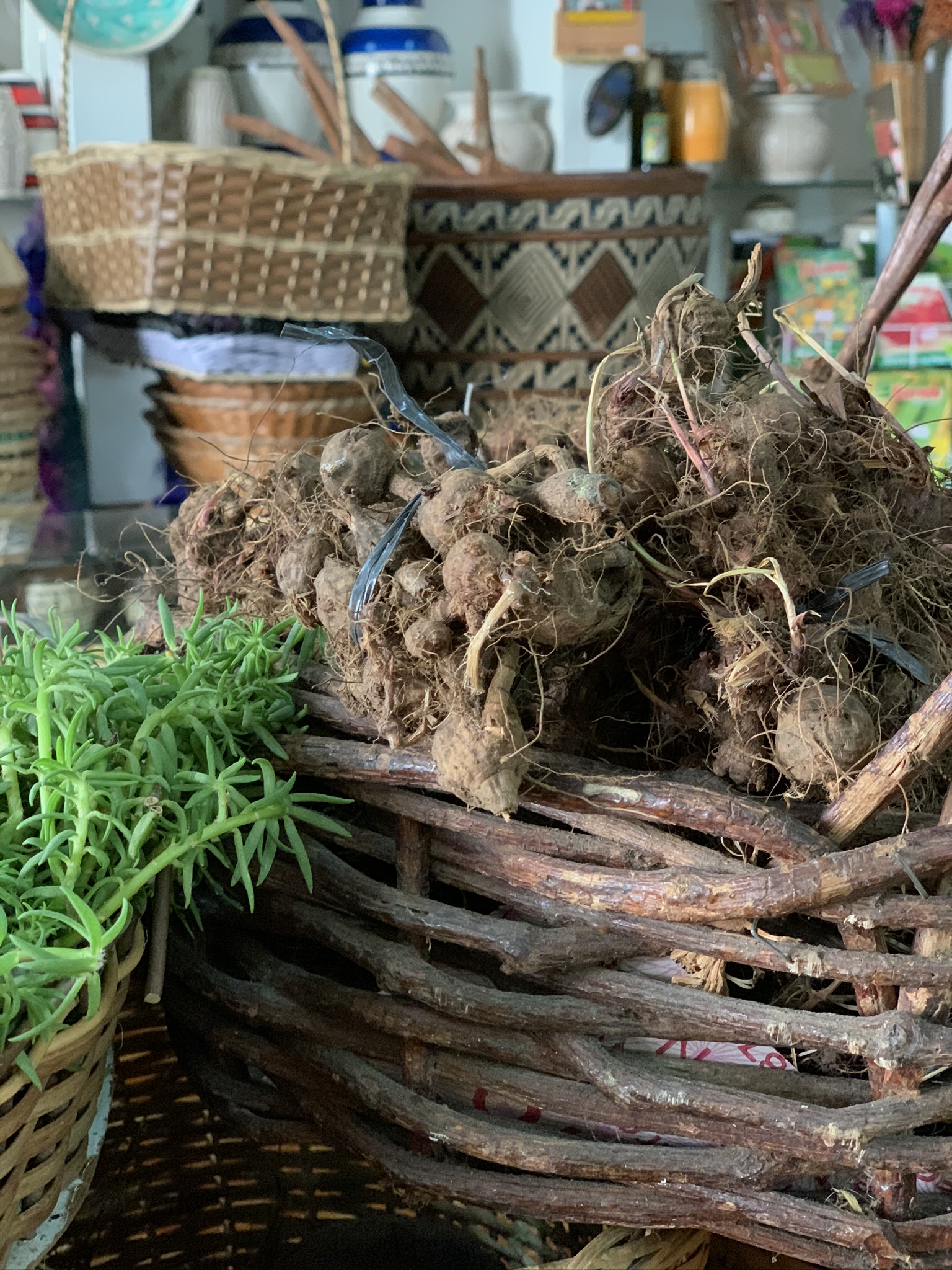 Menos popular fora do Norte e originário da Amazônia, o jambu é, talvez ao lado do coentro-do-pará (ou chicória, como eles chamam), a erva mais característica da culinária paraense. Para quem não conhece, é aquela erva com uma florzinha amarela que dá um tremelique na língua. A sensação é muito diferente e o sabor das folhas lembra agrião, porém mais marcante. Não pode faltar no tacacá e fica ótimo também na moqueca de tucupi, que aprendemos lá, cozido no arroz ou só escaldado mesmo. Gosto também de fazer um molho de jambu com pimenta e azeite que fica levemente dormente e picante, bom para acompanhar peixes e frutos do mar. Aliás, descobri que o jambu de lá, aparentemente a mesma variedade que tenho plantada aqui, tem as flores e folhas maiores e o caule menos fibroso, bem mais macio depois de cozido. Minha amiga e companheira nesta viagem, Maíra, do @tampopoinspira (que, aliás, fez um post ótimo sobre a viagem, com dicas boas para quem curte gastronomia e quer comer bem em Belém), acha que essa diferença é uma questão de terreno mais úmido e sol. Na dúvida, já que voltamos meio viciadas no jambu, trouxemos sementes para plantar aqui.