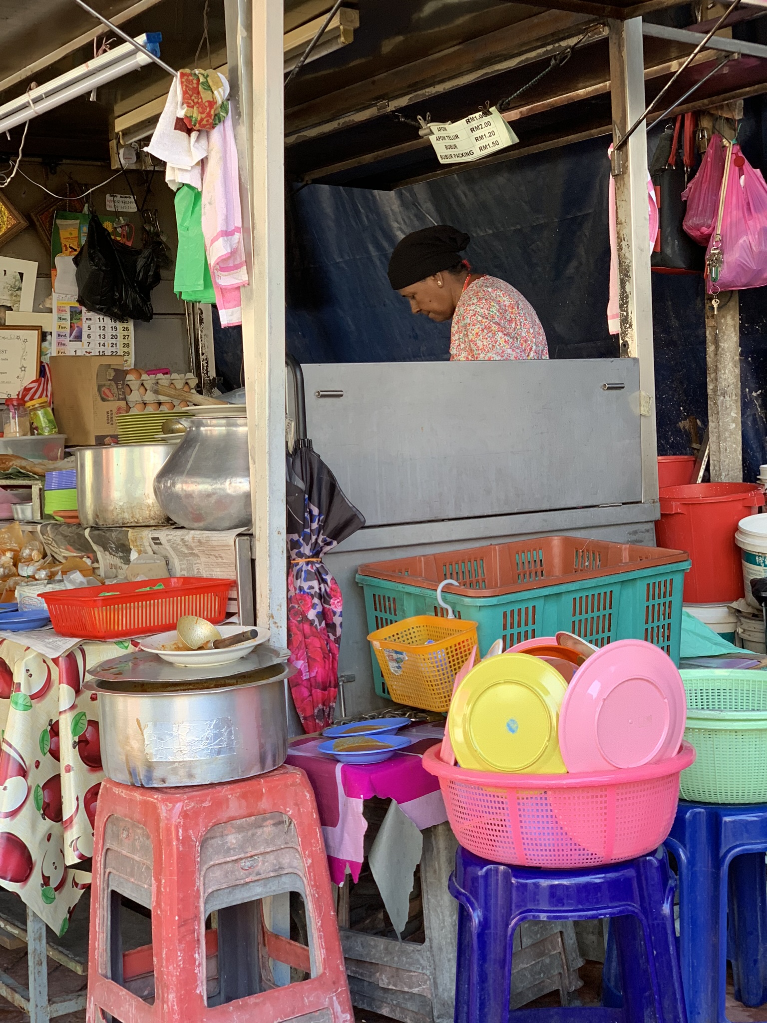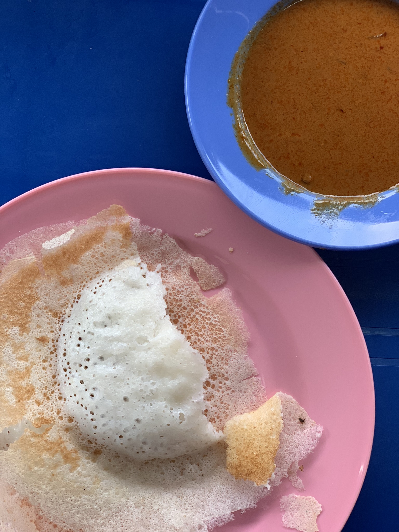 Depois porque Georgetown, diferentemente de outras cidades da Malásia e até mesmo de Kuala Lumpur, ainda preserva muito viva a comida de rua. Acho que nenhum outro lugar do mundo (talvez Bangkok) tem tantas barraquinhas ou feiras de comida como lá. E tem de tudo: comidas tradicionais de todas as comunidades que formam essa cultura tão miscigenada quanto a nossa e também de países fronteiriços, como a Tailândia e a Indonésia. É uma perdição para quem tem um estômago só e quer provar de tudo! Eu amanhecia na barraca do Sri Lanka para comer appam, uma deliciosa panqueca fermentada de massa de arroz e leite de coco, que fica aerada e esponjosa no centro e crocante nas bordas. Pedia sempre duas ou três, uma simples, outra com ovo e comia com molho de pimenta, sentada nas mesinhas no meio da rua, junto com a comunidade local, que, claro, achava que eu era indiana. No almoço, ou estávamos fazendo curso de culinária ou imersão guiada na arte e na comida de ruas. E no jantar explorávamos mais os restaurantes ou as feiras da cidade.