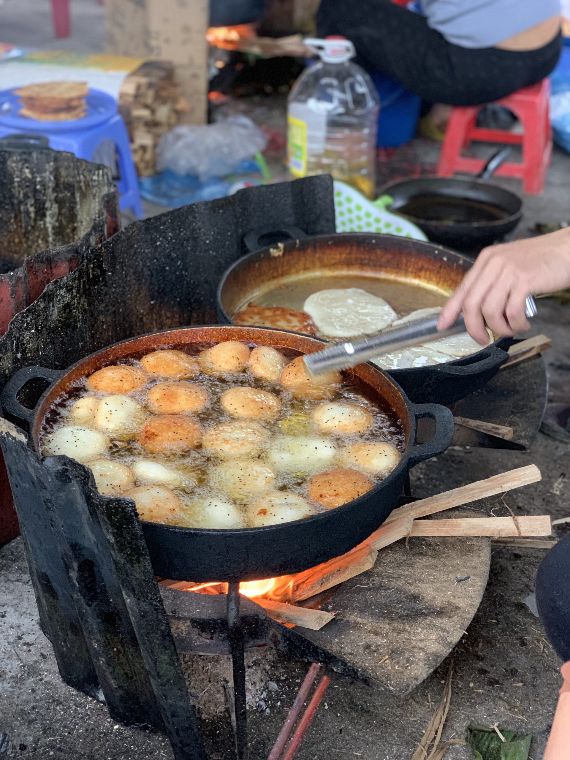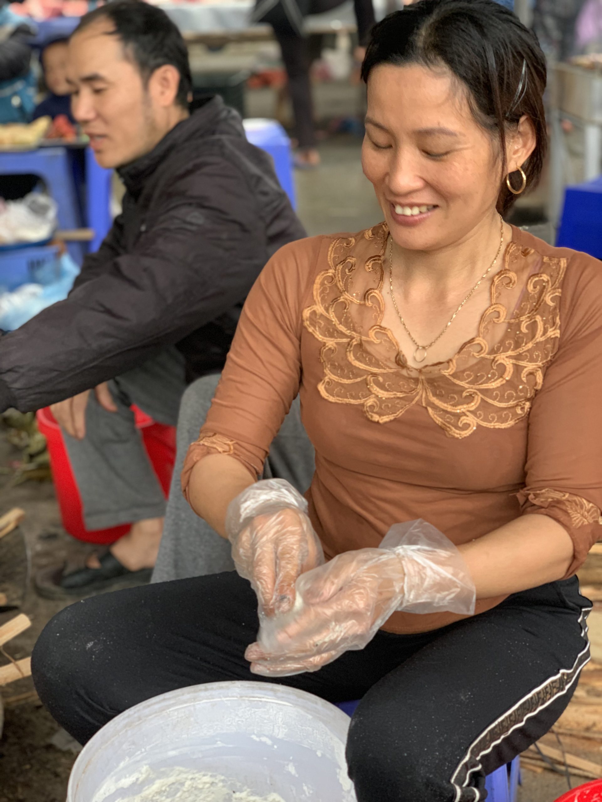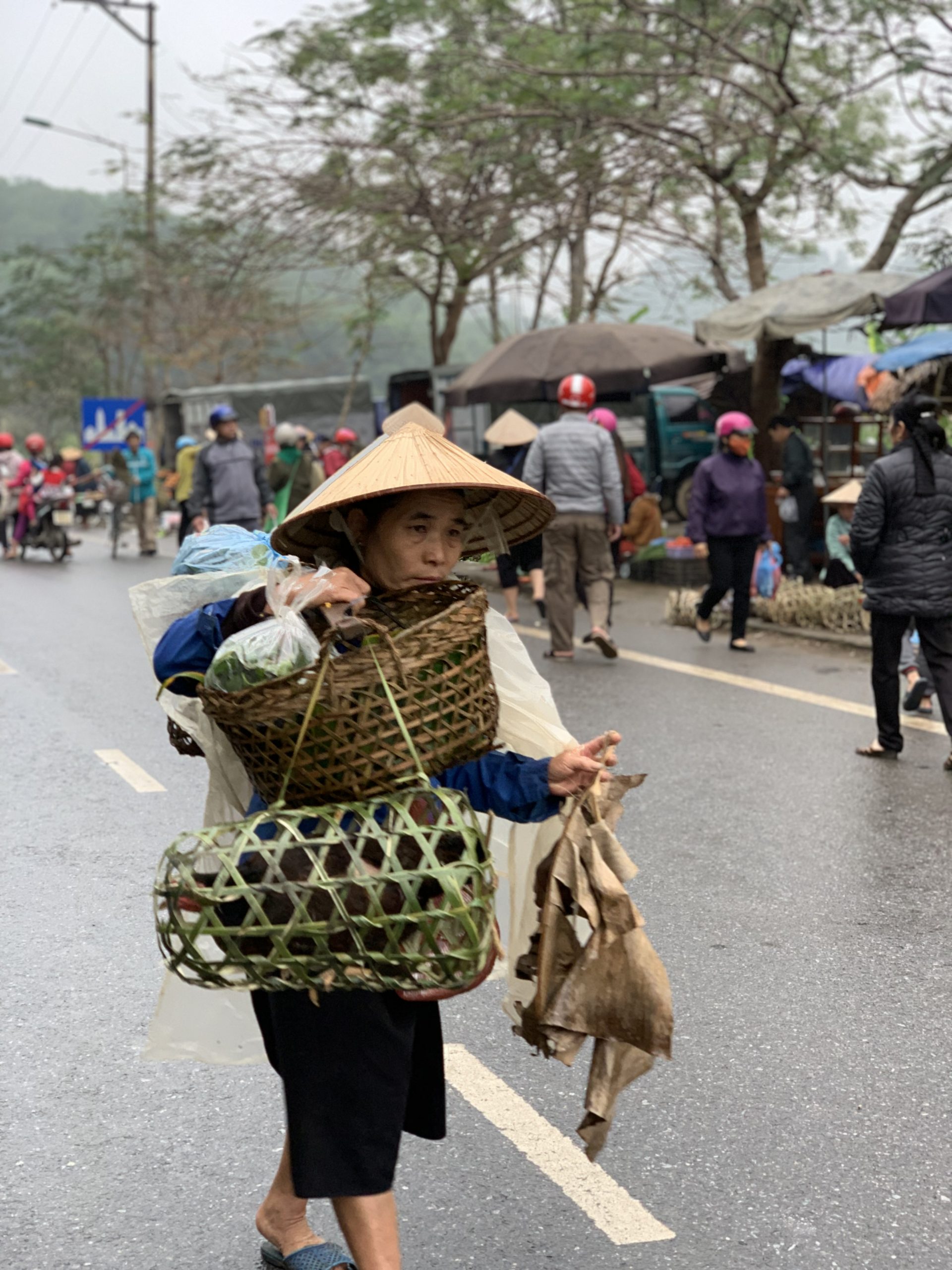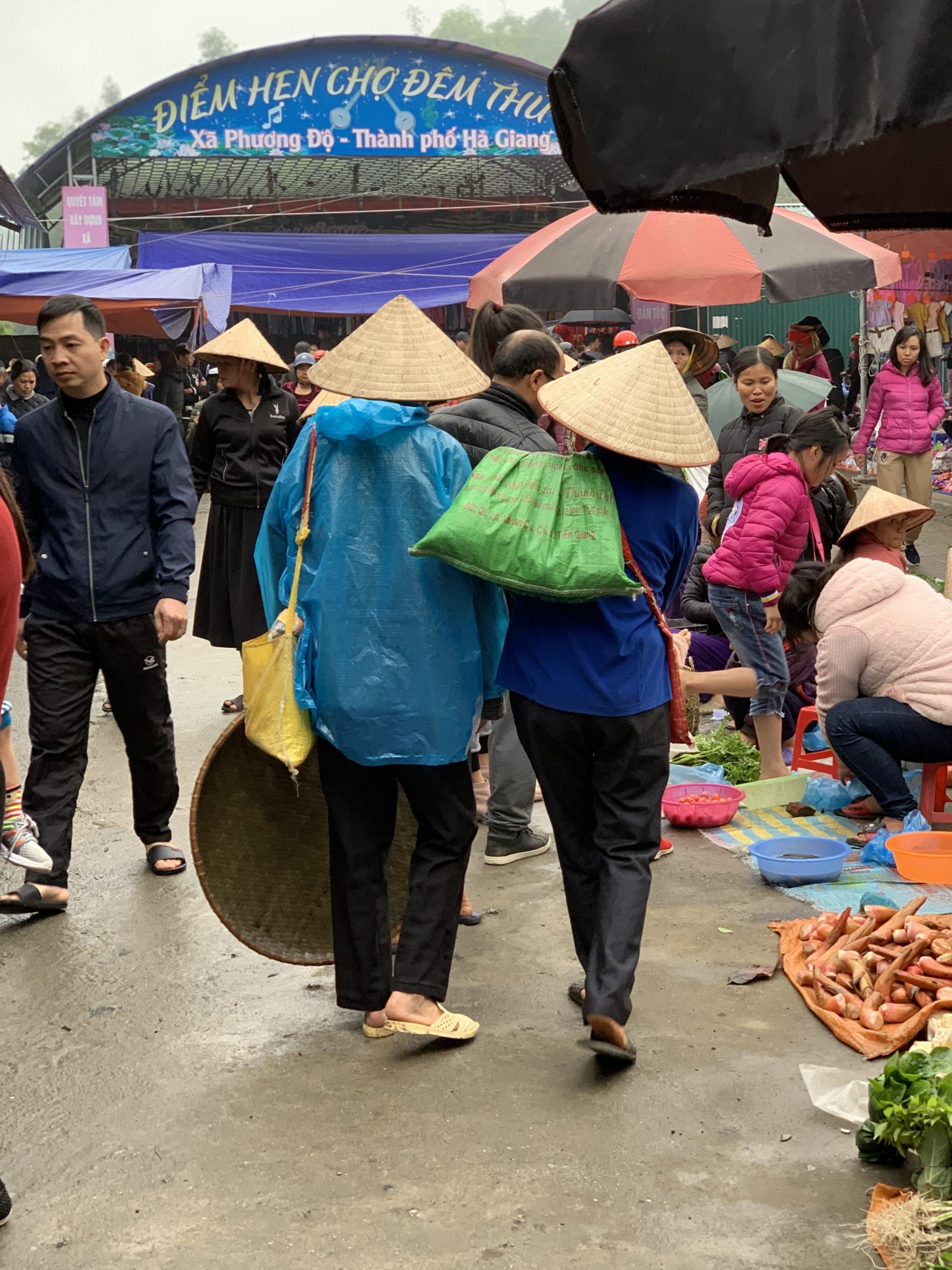 Era domingo de manhã, dia de feira em Ha Giang, quando os produtores da redondeza levam seus cultivos ou criações para a cidadezinha. Antes da trilha entre arrozais e plantações de chá, lá vamos nós à feira com o nosso guia. Muitas verduras, galinhas e ovos, sementes, picles, umas bugigangas e uma dúzia de barraquinhas de comida. Bolinhos de todos os tipo envoltos em folha de bananeira, panquecas de batata-doce, frituras, noodles. Eu já tinha tomado café da manhã na casa da senhora Dong, que nos hospedava. Não seja tão ingênuo ou guloso como eu, leitor, de forrar o estômago antes de ir à feira, mas é que o desjejum asiático é o meu preferido e não deixo de comer por nada — pense em sopas de peixe e arroz, canja, noodles em caldo quentinho, huummm…