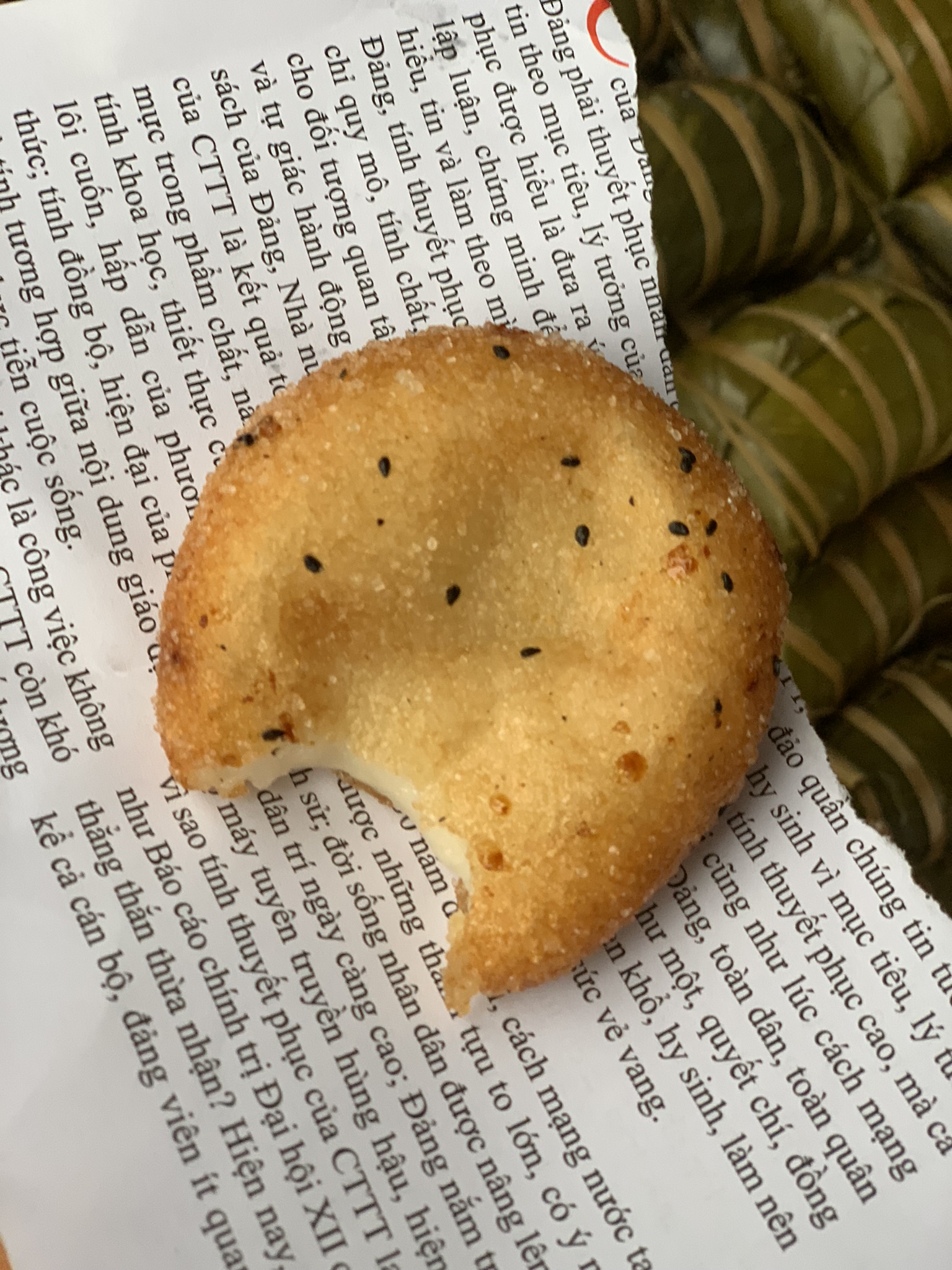 Estava eu resistindo às tentações da feira, até sentir um aroma acastanhado forte e instigante. Fui andando de barraca em barraca até ter certeza do que me chamava: num tacho de ferro sobre um fogareiro à lenha improvisado no chão, uma moça, sorrindo, virava no óleo quente bolinhos de arroz dourados à perfeição. Um a um eles vão ficando no ponto, depois de escorridos, ainda quentes que só, ganham uma camada quase imperceptível de açúcar soltinho e gergelim preto. Imóvel, observei a cena por uns minutos tentando absorver cada detalhe, textura, movimento e, claro, aquele cheiro. Quando dei por mim de novo, já segurava um bolinho envolto num papel jornal rasgado. A moça me olhava com o sorriso aberto. Eu não poderia imaginar o que vinha pela frente, mas é um dos sabores mais singelos e inesperados que já provei. Um bolinho de arroz glutinoso recheado de pasta de feijão verde com casquinha fininha, um tico só doce e ainda mais perfeita com o gergelim. Macio, crocante, quente, doce, salgado; de novo, macio e crocante. Suspirei. E foi aí que decifrei aquele sorriso da moça que os fritava. Olhei para a frente e agora ela sorria ainda mais, como se dissesse a mim: “entendeu a minha alegria, né?”. Ela sabia contemplar o bom, o belo, o simples. Às vezes acho que sonhei com tamanho primor, mas as fotos me asseguram a realidade e de tempos em tempos eu volto à cena para ter certeza de que a felicidade mora mesmo em pequeninas mordidas assim.