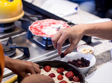 Fiz esta versão da torta, pela primeira vez, num aniversário meu há uns três anos. Exagerada, fiz seis tortas, mas no dia seguinte não tinha nem um pedaço sequer para aquela hora em que os cozinheiros provam, com calma, a comida no pós-festa. Os amigos pediram tanto para eu ensinar a fazer a torta (e outras receitas da festa) que ela acabou entrando na primeira versão das aulas do Cozinha Tropical e é uma das receitas mais reproduzidas. É fácil de fazer, fica deliciosa e as combinações de sabores na cobertura e na base são infinitas. Então, mesmo quando a época das amoras se vai, a gente continua tendo bons motivos (e ideias) para fazer a torta!